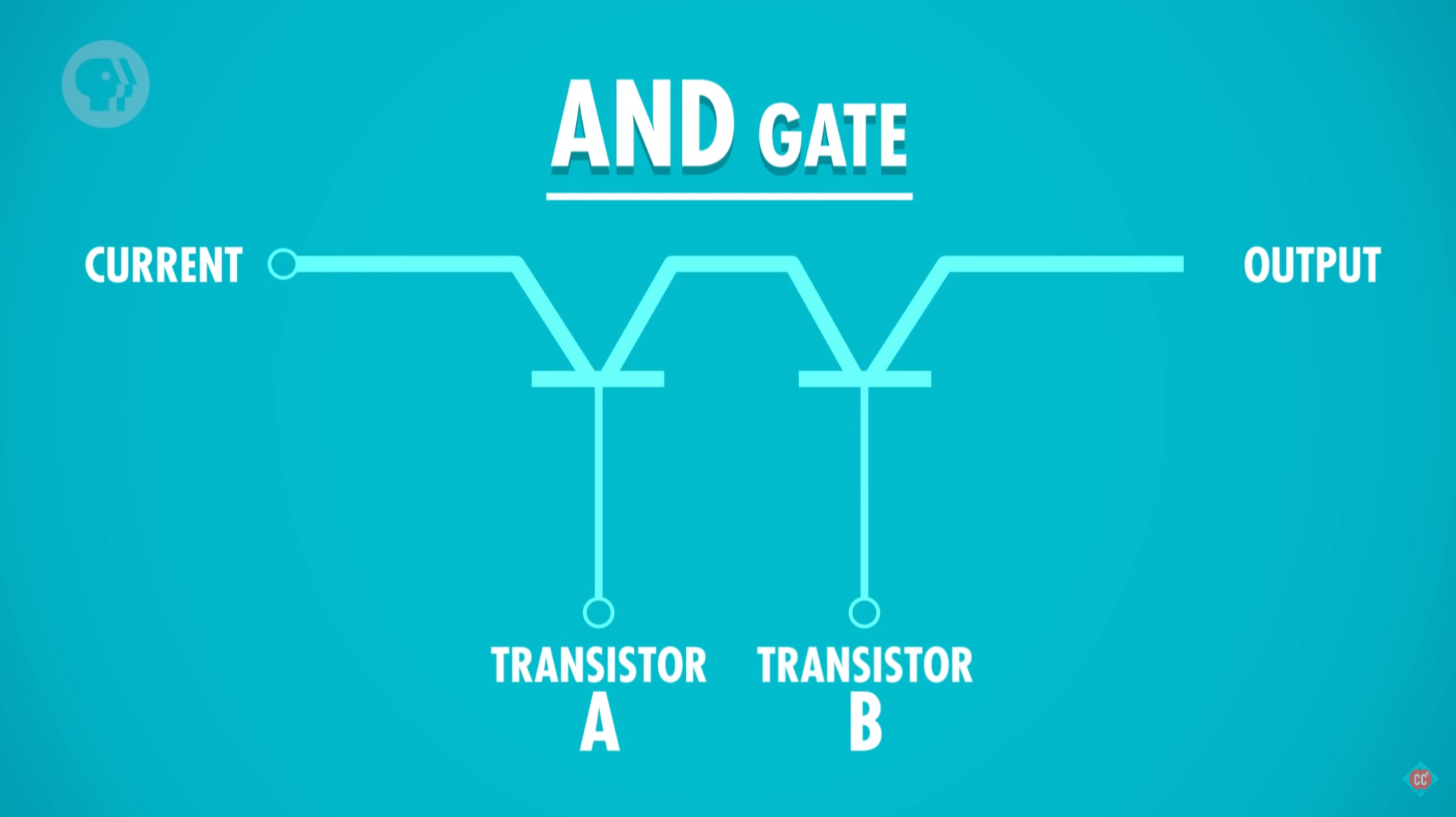 * 两晶体管串联，当且仅当 2 个晶体管都通电，输出才有电流（True）。