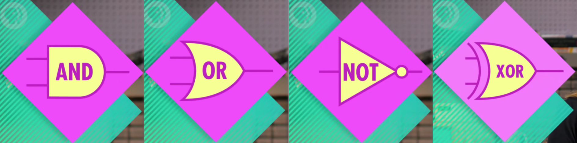 作为用晶体管搭建的复杂电路的抽象，将逻辑门电路简化，用于构建更大的组件，而不至于太复杂。与、或、非以及异或门电路符号如下：